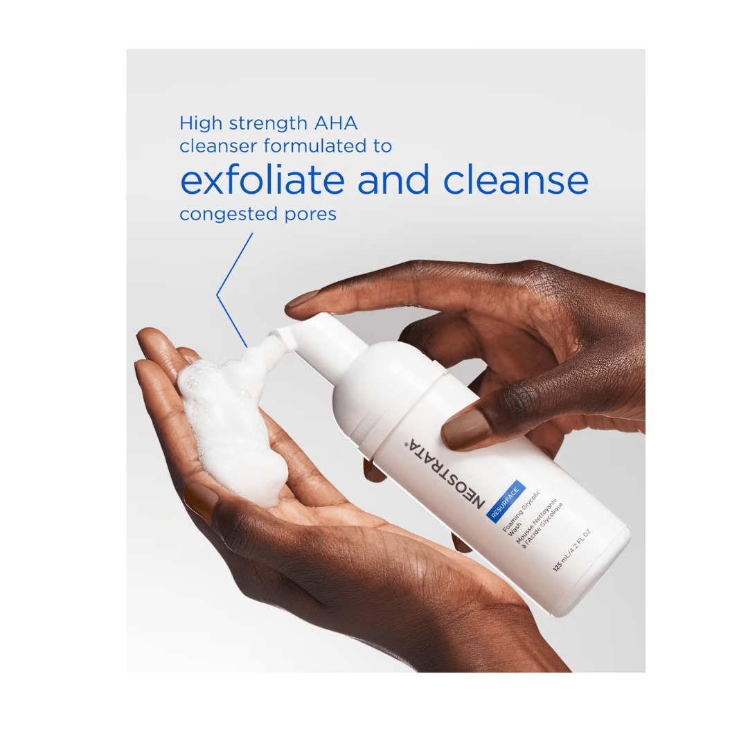 De Resurface Foaming Glycolic Wash van Neostrata is een huidvernieuwende cleanser. De schuimende reiniger bevat glycolzuur, waarvan bekend is dat het de huidtint zichtbaar egaliseert en is geformuleerd om het huidoppervlak opnieuw te structureren. Zo reinigt het de verstopte poriën en exfolieert dit het huidoppervlak lichtjes. Hierdoor wordt de huid voorbereid op de andere stappen in jouw routine. De reiniger is geschikt voor droge, normale en vette huidtypen.